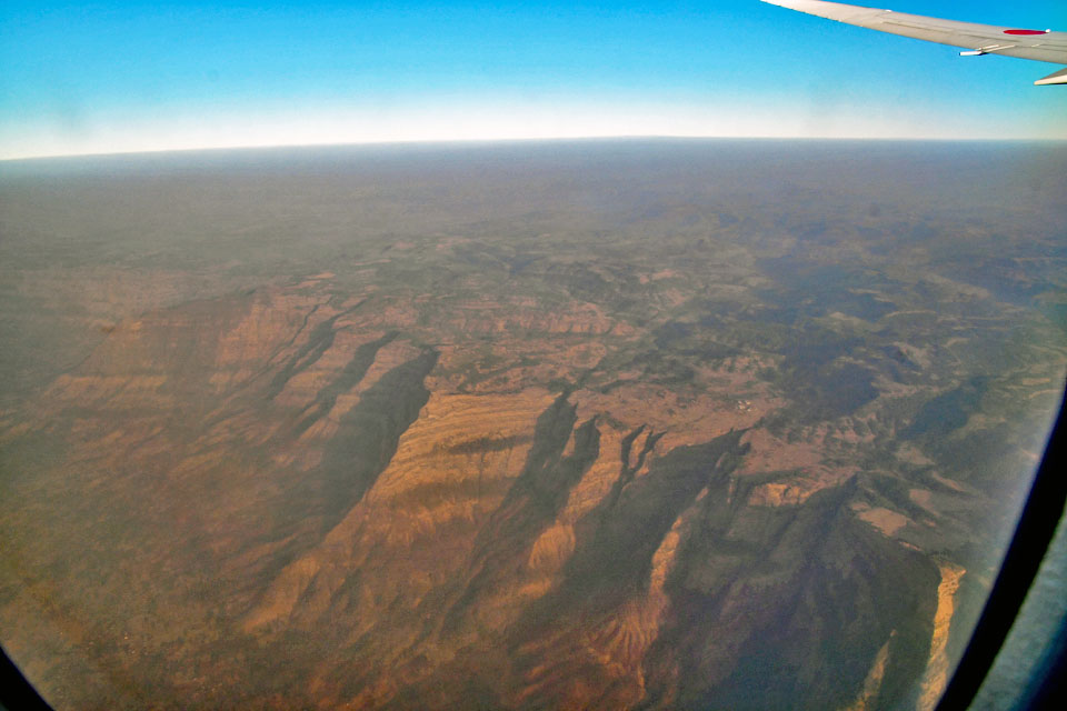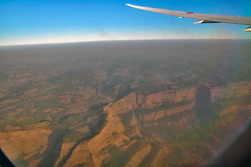 ![]() Western Ghats(西ガーツ山脈)。 撮影:2019年3月6日,NH0829機上より。 NRT(新東京国際空港)⇒ BOM(チャトラパティ・シヴァージー国際空港)。(画像全て)。 |