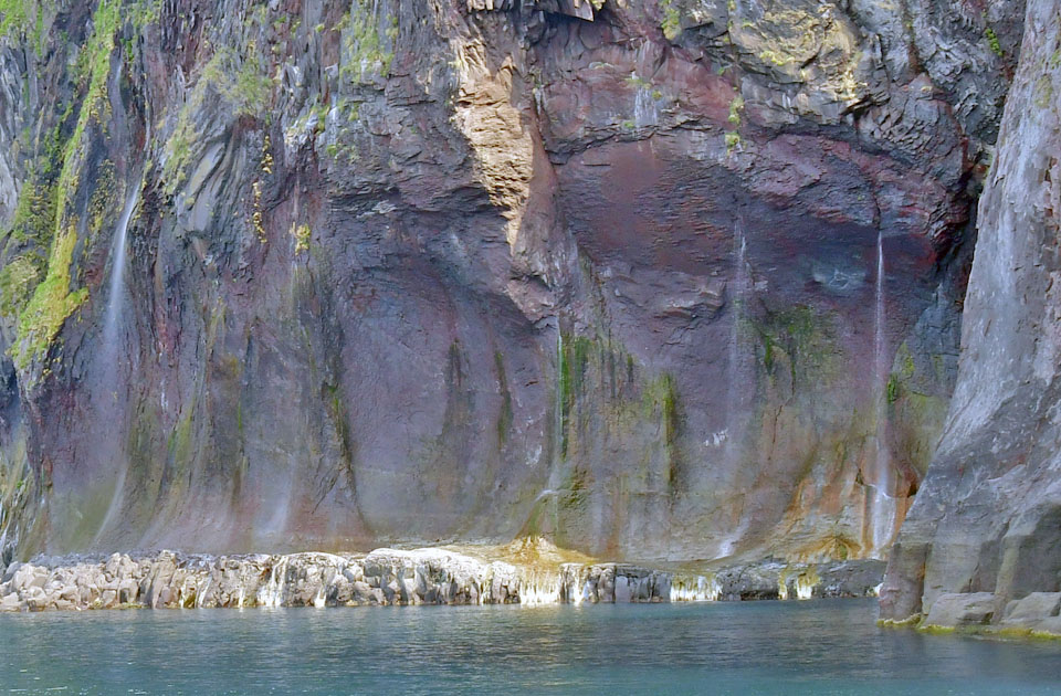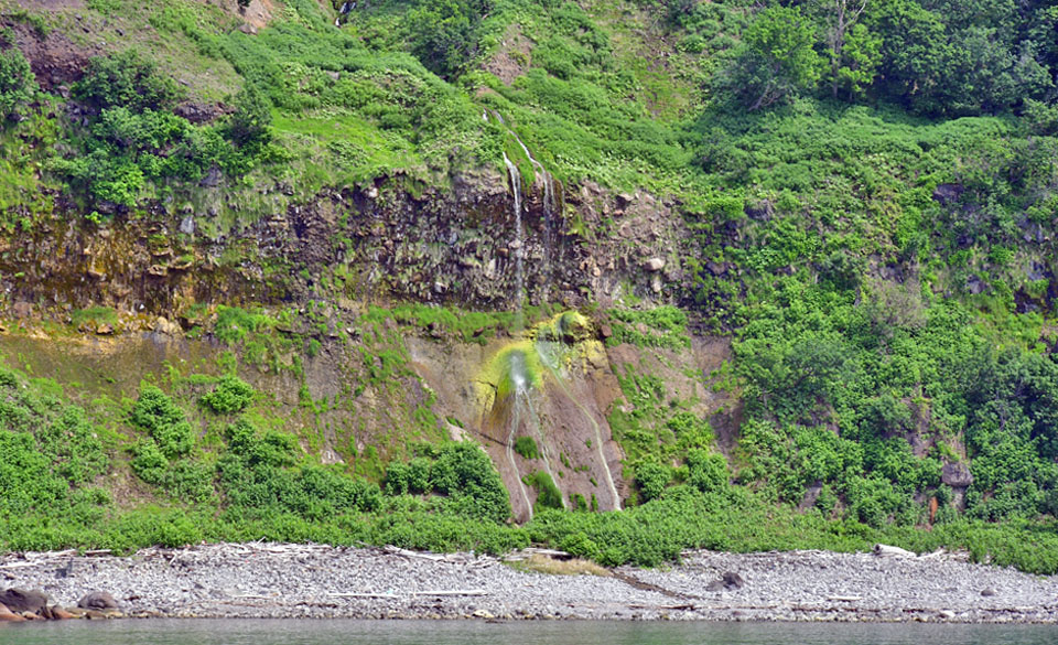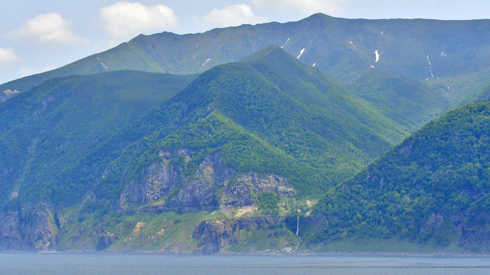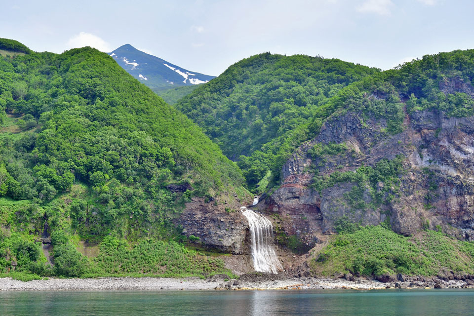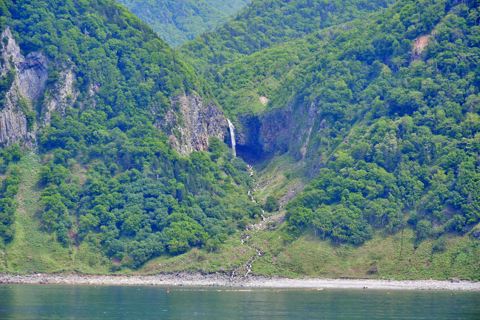 ![]() 【参考】知床硫黄山の西斜面が海に落ちるところは,流氷で削られているために断崖絶壁になっており,滝も多いのだ。 |