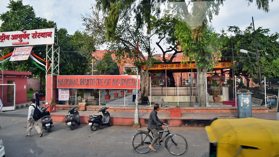 ![]() ジャイプール第1のメインロード「Amer Road」沿いにある「NATIONAL INSTITUTE OF AYURVEDA」。 アーユルベーダのための国立の教育機関があるのか!。 |