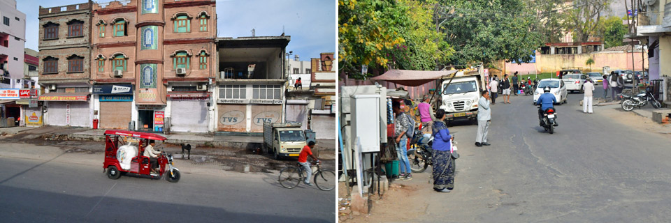 ![]() ジャイプールの市内で見かけた数ショット。 土の歩道は殆ど無いのだ。 |