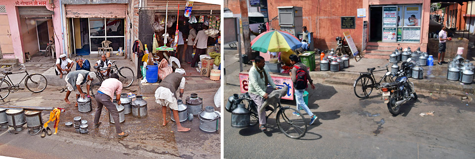 ![]() 左右とも,牛乳屋だが,容器を洗うのは路上なのね。 ベリーホットで飲まなくちゃ,やっぱり。 |