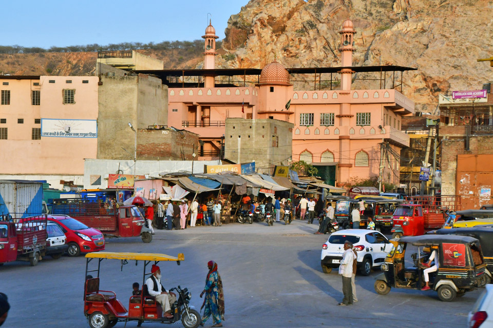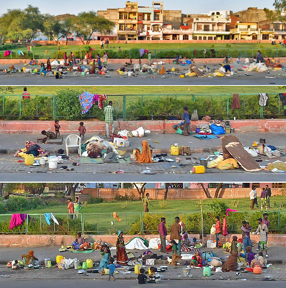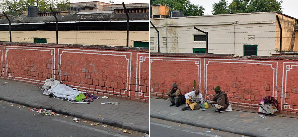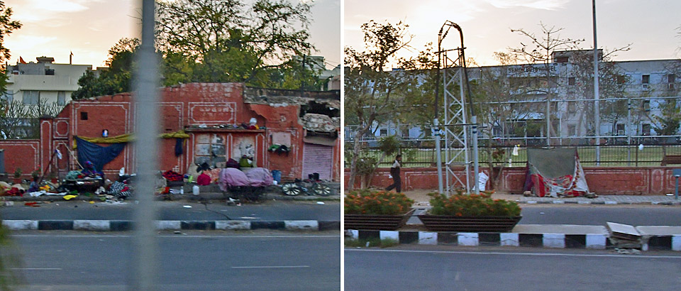 ![]() 日の出前。 南門「Shiv Pol(Sanganeri Gate)」より数キロメートル南にも,ホームレスが暮らしていた。 |