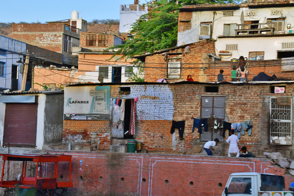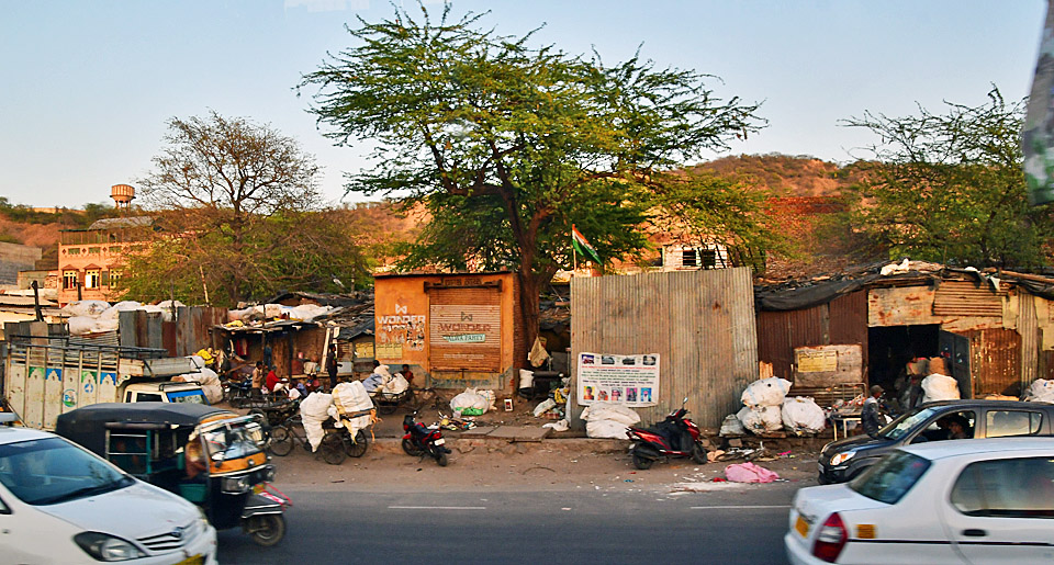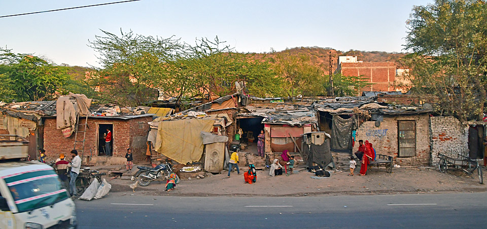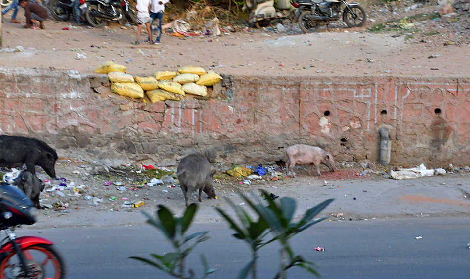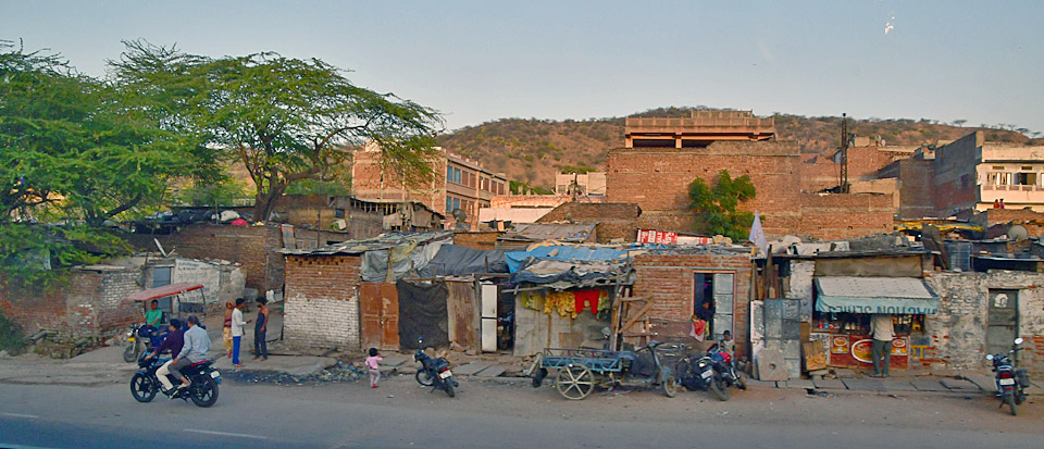![]() 「NH248」を北上中。 野豚がいた。 ジャイプールにも,スラムがあるのか?。 舗装された歩道がゴミ捨て場(処理場?)と化している。 豚や牛に食べさせるためだ。 |