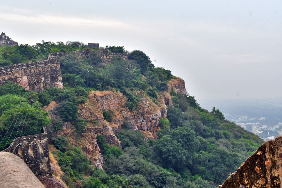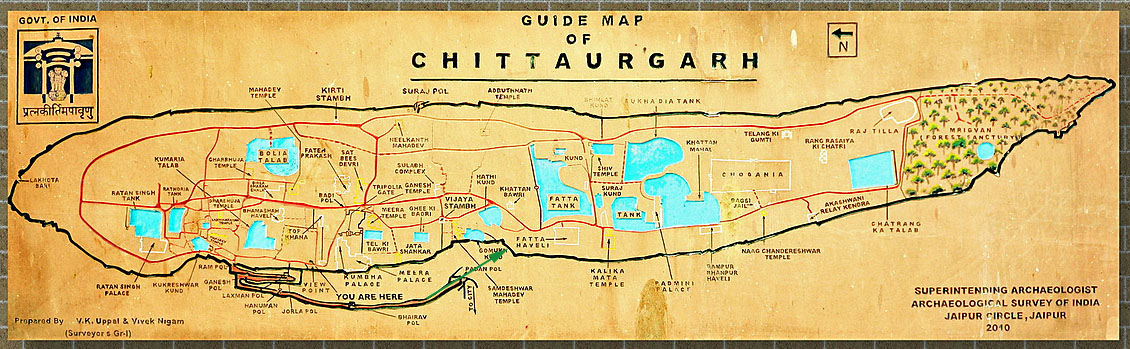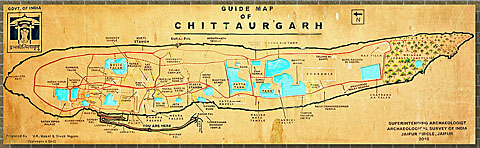 | Chittorgarh(Chittou Fort)は,インドで最大規模を誇る砦の一つだそうだ。縞状片麻岩からなるテーブルマウンテン(約5km×約1km)の頂上の全てが砦となっているが,規模こそ違うがスリランカのシーギリア・ロックと同じ性格を持った砦なのだ。