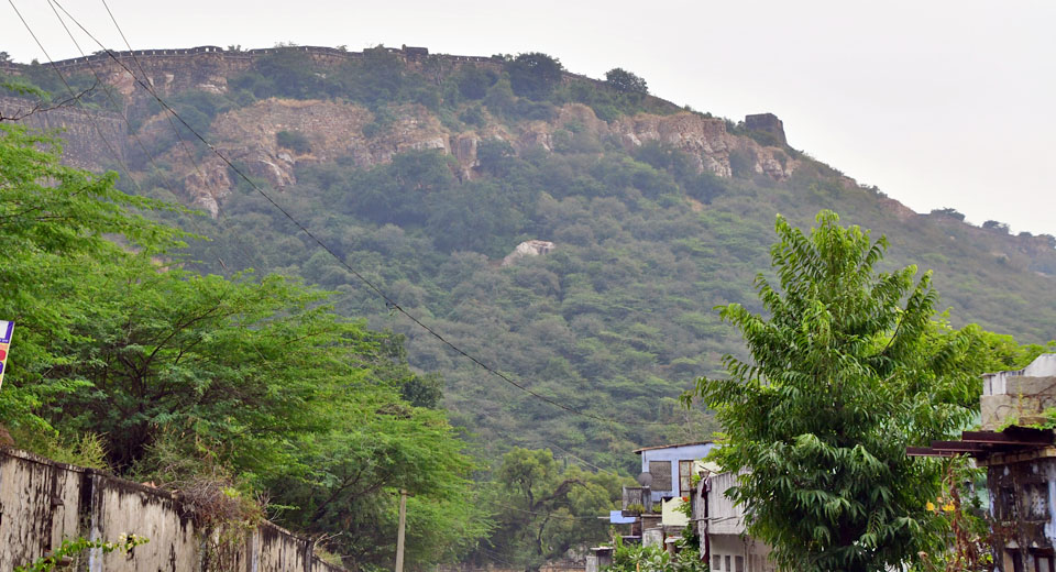 台地の西側に広がる「Chittorgarh」の町並み。-画像クリックで拡大- |