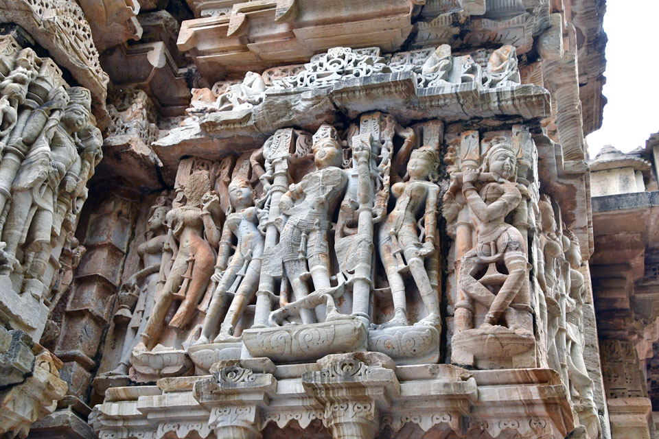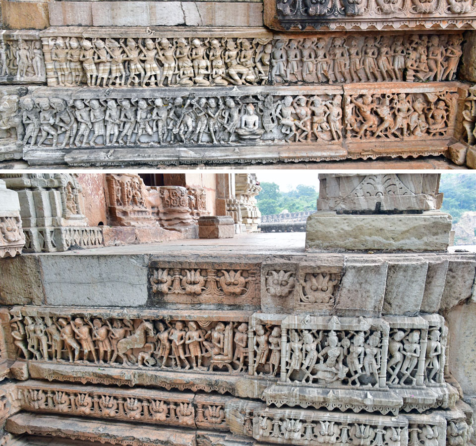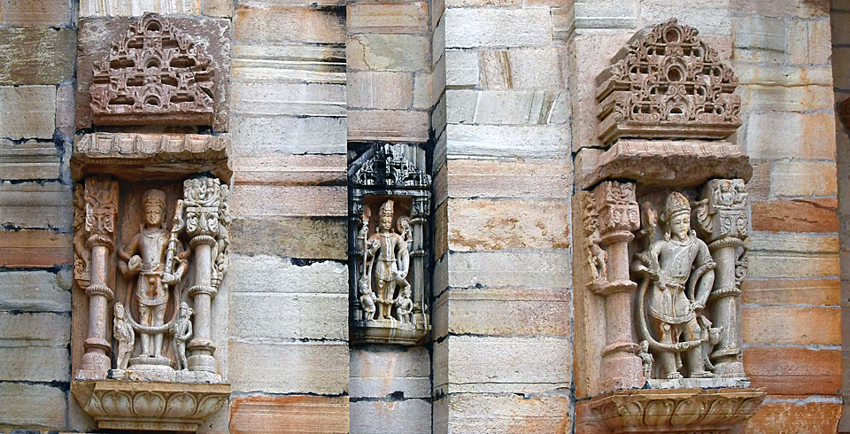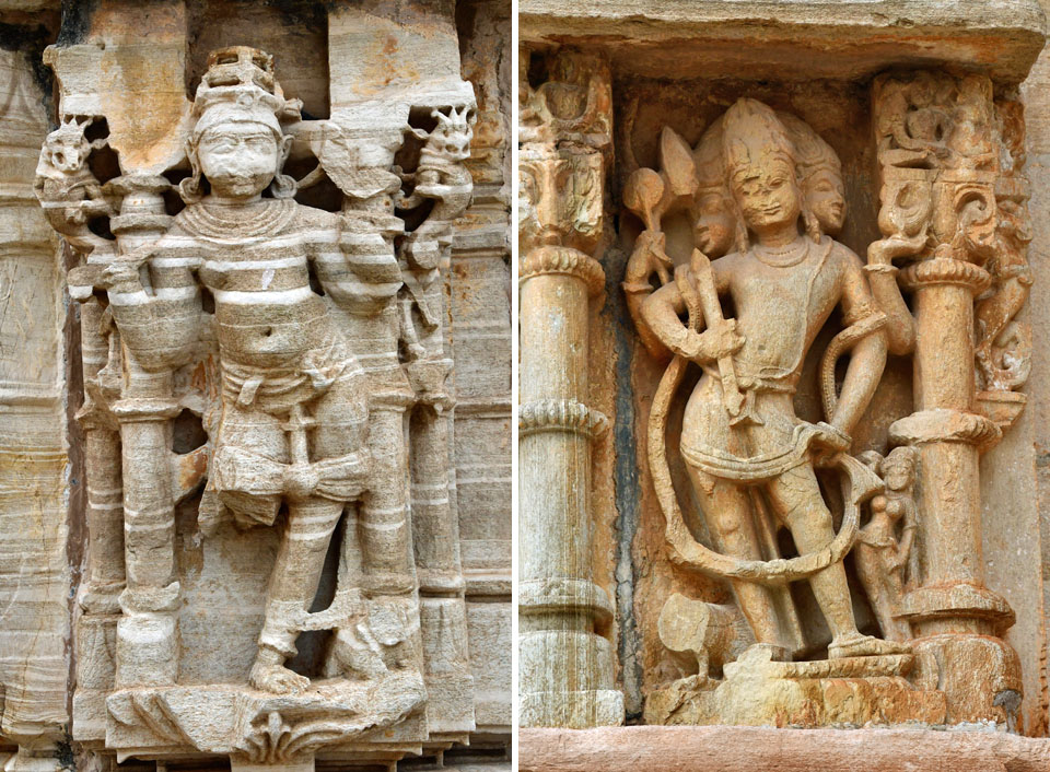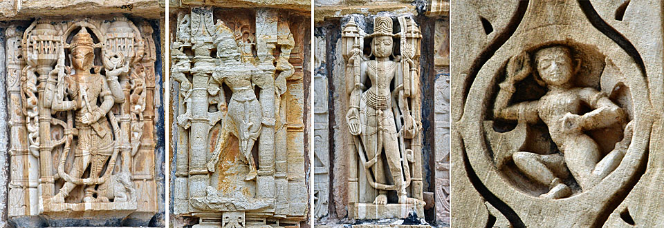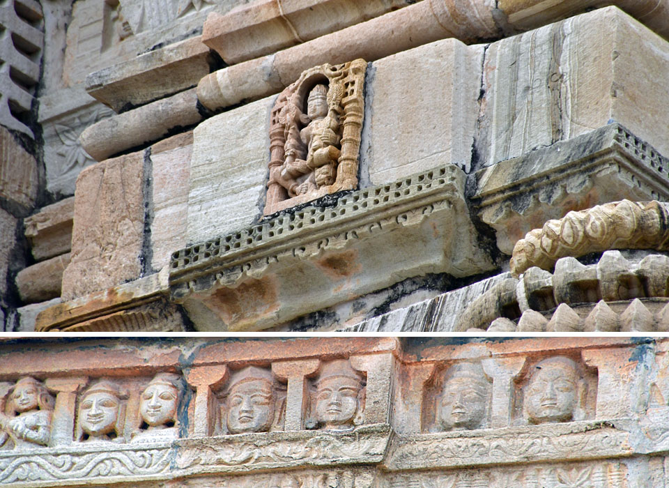 「Samadhisvar Temple」も風化に弱い砂岩製だ。 残念ながら,女神達の身体の一部が欠損してしまっている。 |