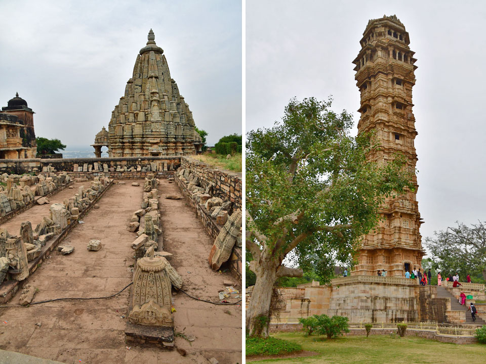 (左)「Samadhisvar Temple」。 (右)「Vijay Stambha(勝利の塔)」。 |