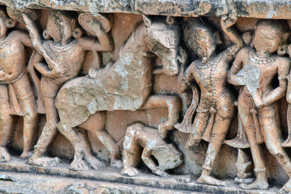 このお寺のレリーフは風化が激しくて,お顔や手足の掛けた像の多いこと。 |