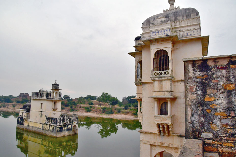 最後の見学箇所である「Padmini Palace」だ。池の中に建っている御殿に王妃を住まわせたという。行ってみれば,人質なのだろう。 |