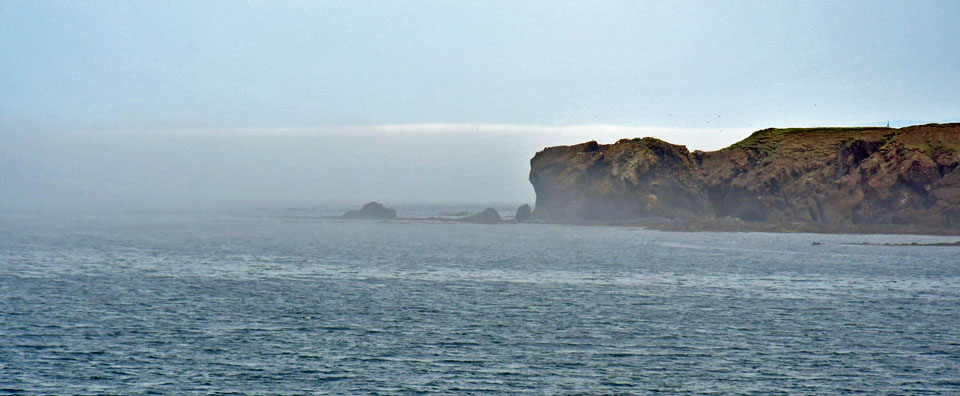 ![]() 羅臼側から霧が流れ込んできている。 この日,ウトロからの観光船は出航したが,羅臼側のシャチウォッチング船は欠航したらしい。 |
