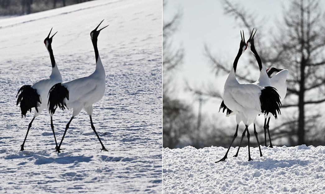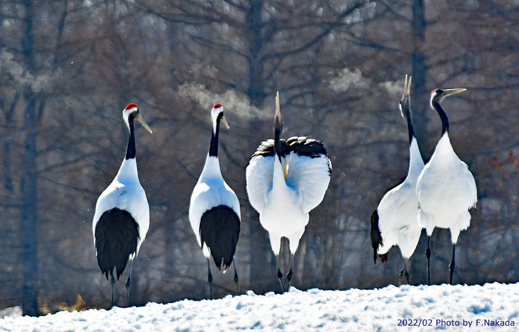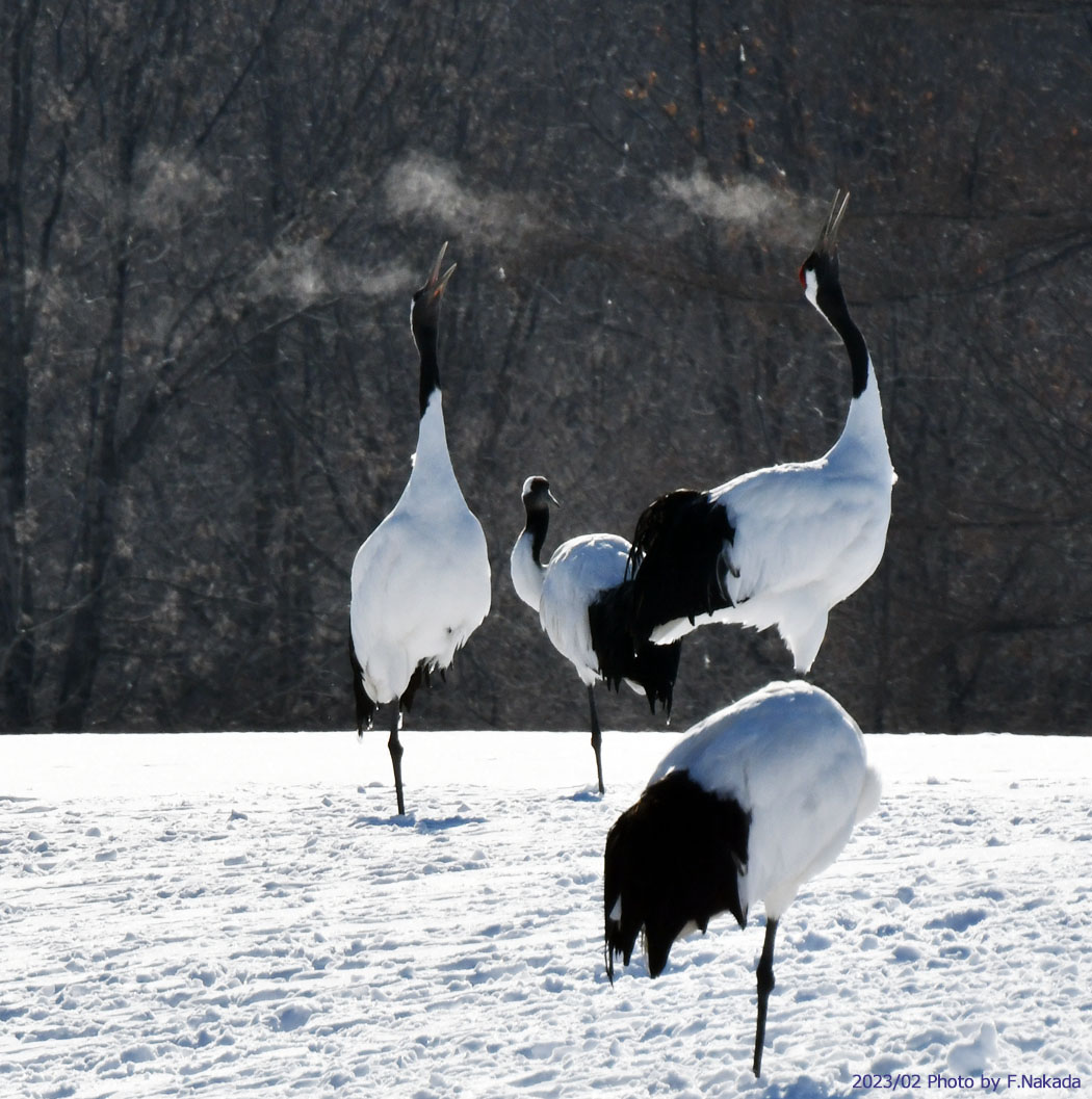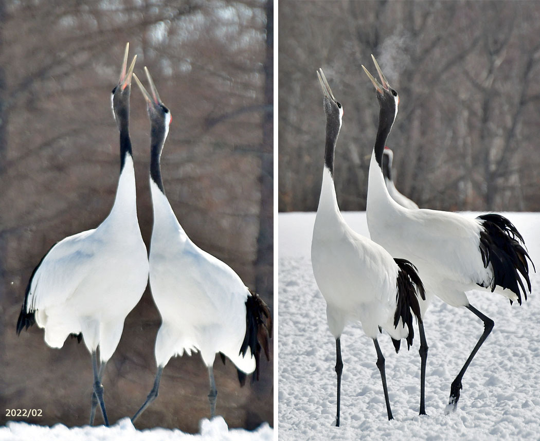 ![]() 2月下旬になると,それこそ,ひっきりなしに「鳴き交わし」が行われるのだ。 ただ,たくさんのタンチョウがいるので,二羽だけのショットは中々撮れなくて困ってしまうのだ。 |