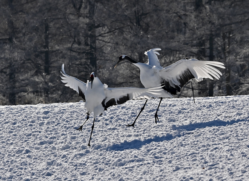 ![]() 一人遊びをするタンチョウ。 一般的に,恋の相手の目の前で同じことをすることもあるようなので,このタンチョウはそのための練習をしていたのかもしれない。 |
