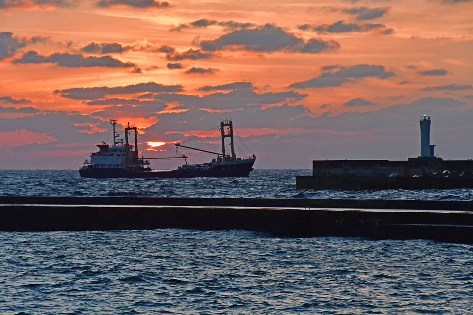![]() 朝日をバックに,伊豆七島海運の「友正丸」が入港してきた。 八丈航路にはフェリーが無いので,車は貨物船で運ぶのだ。 撮影:2019年10月2日5時38分。 友正丸[YOUSHO MARU],総トン数:460ton,船種:貨物船(乗客12名まで),航路:東京~八丈島。 |