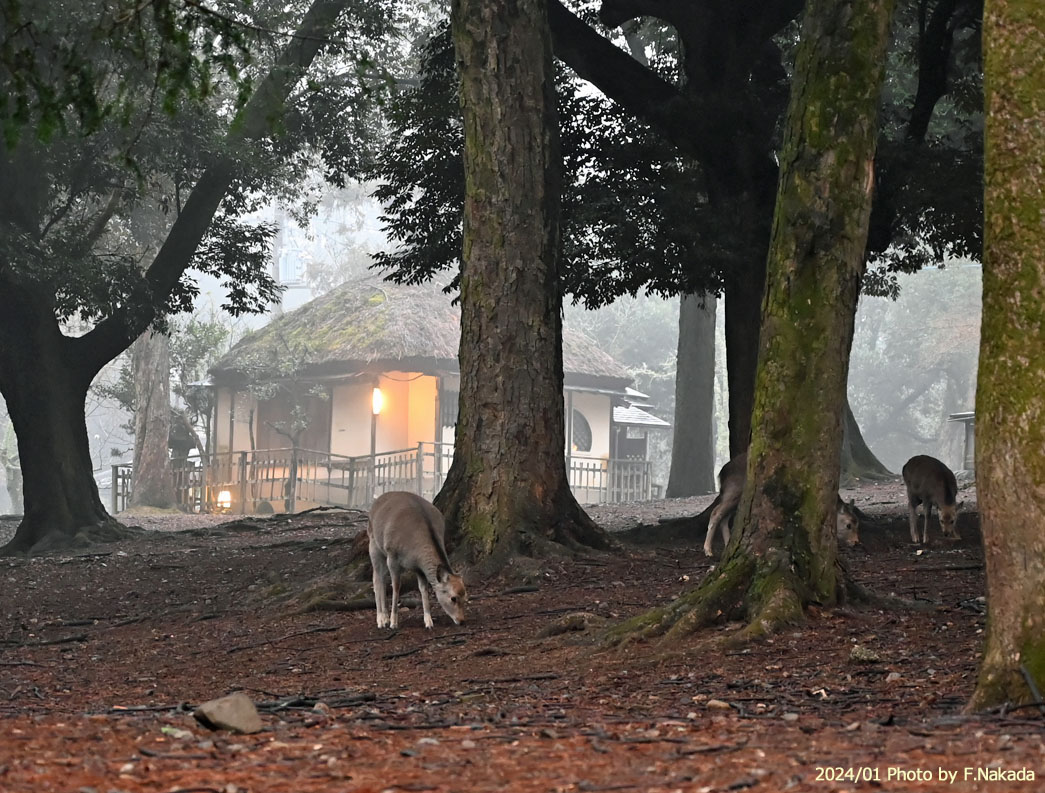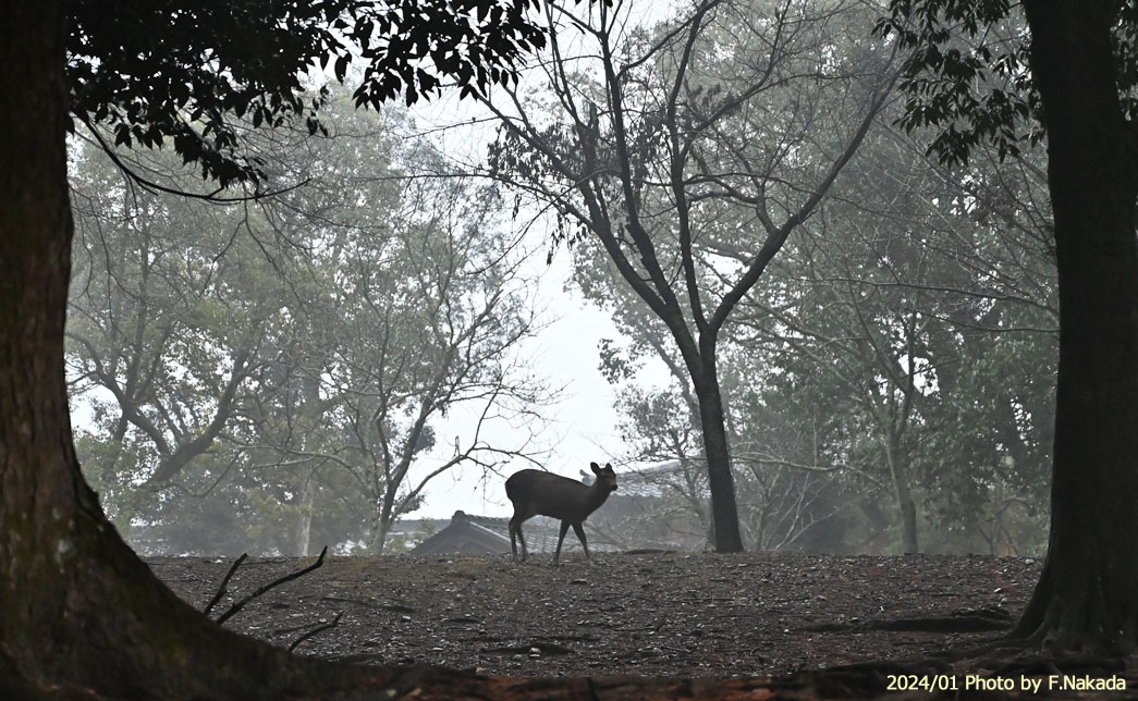 | 朝霧立ち込める奈良公園 |
