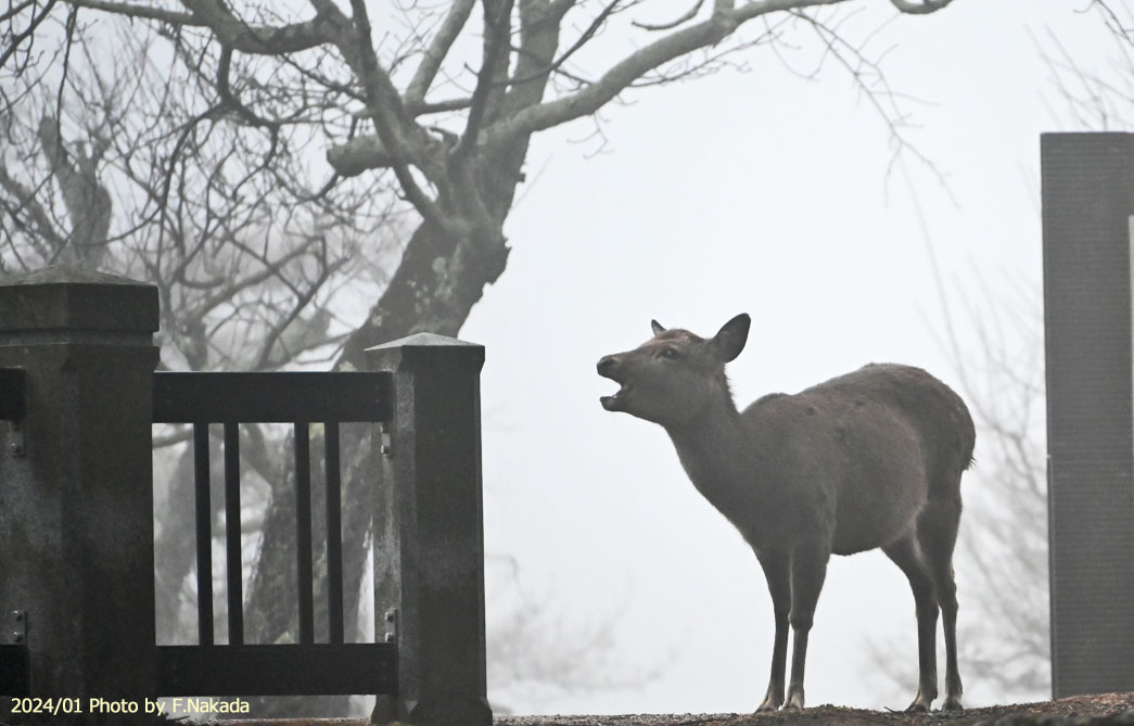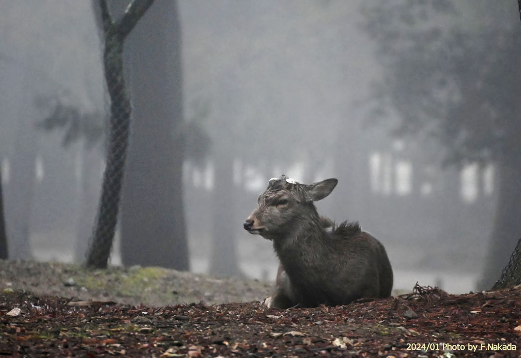 | 朝霧の奈良公園にて |