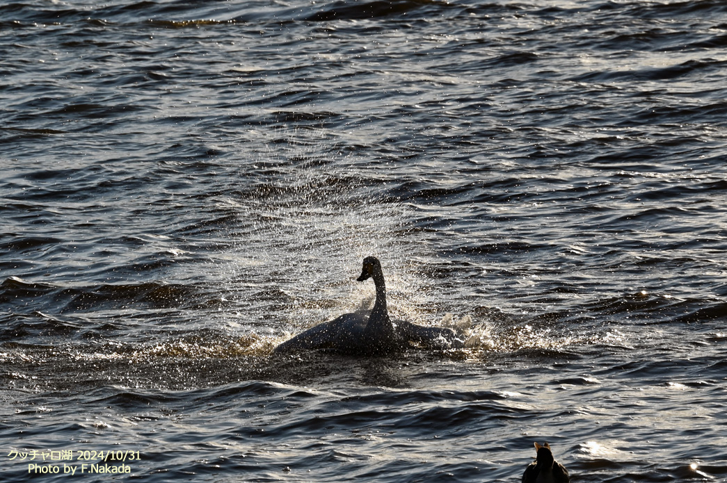 ![]() 離水前の助走ではなく,水浴びをしているような感じだった。 |