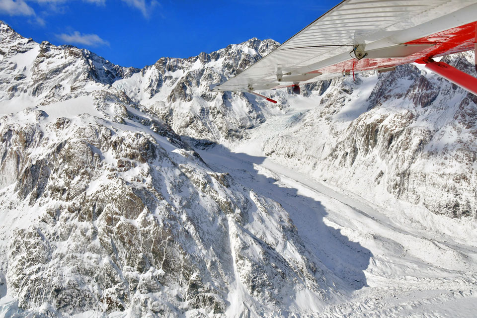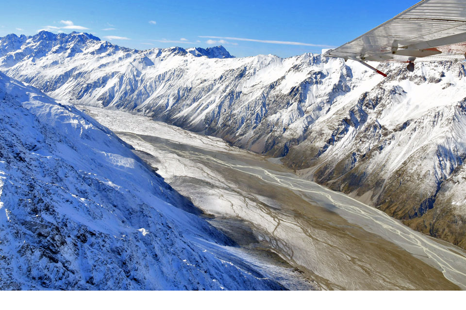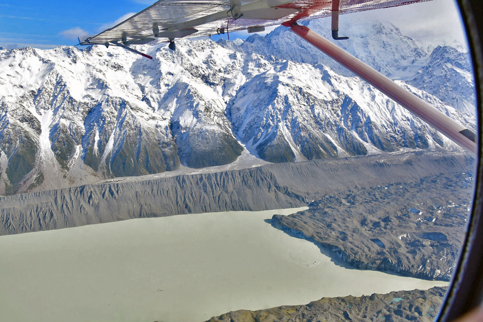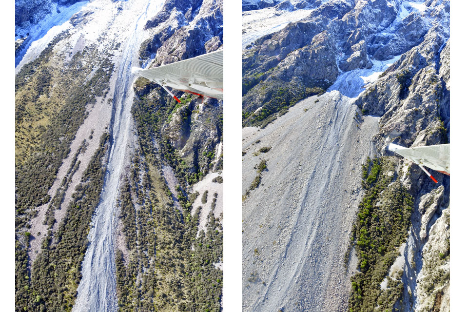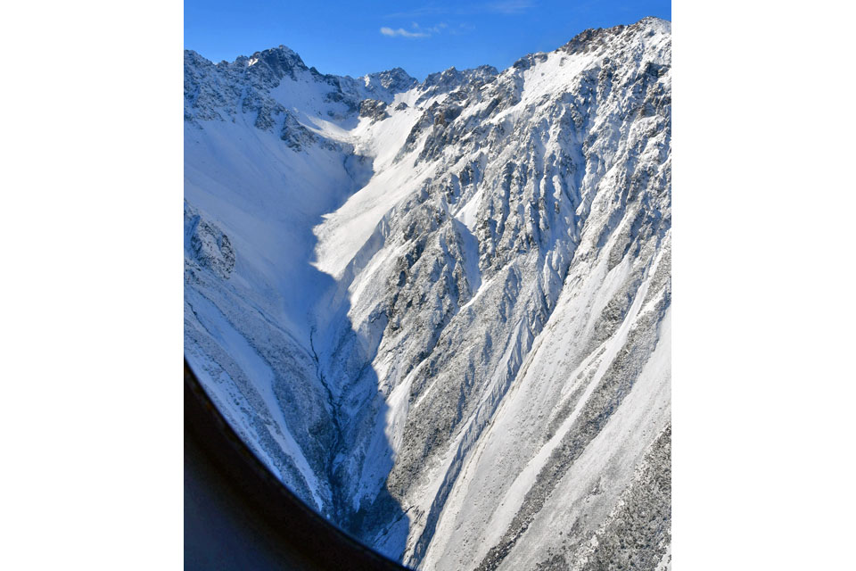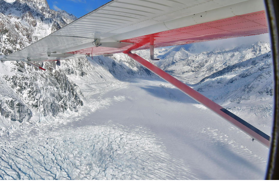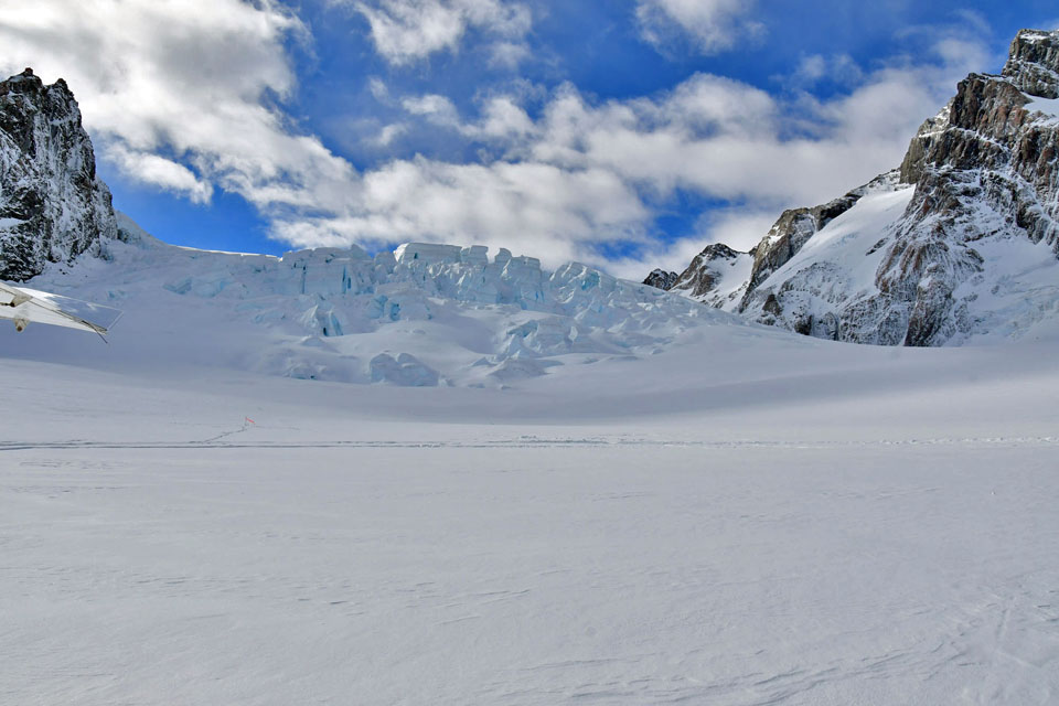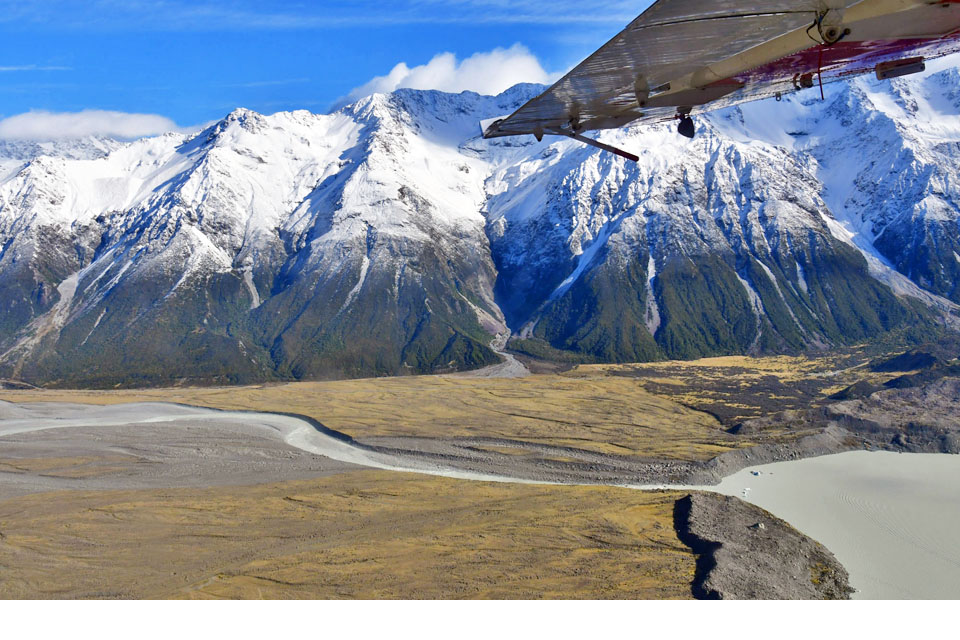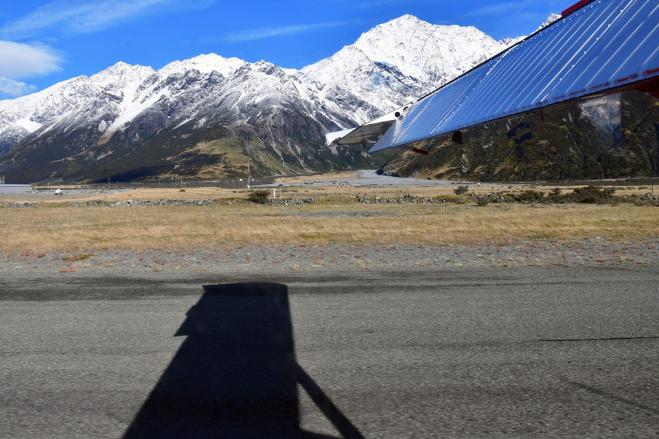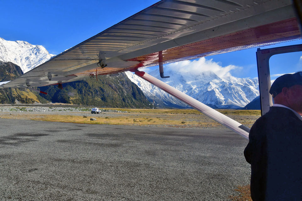 このスライドは、2018年4月にニュージーランド・クック山の氷河に小型飛行機で到達したときの記録です。