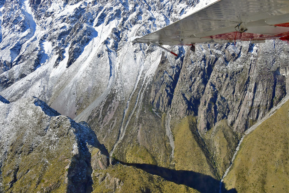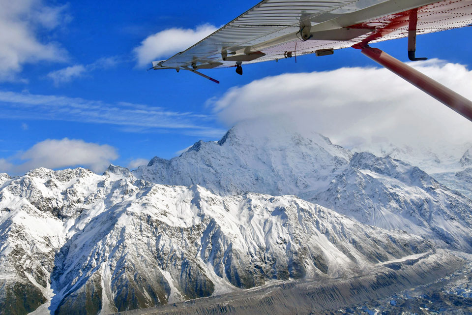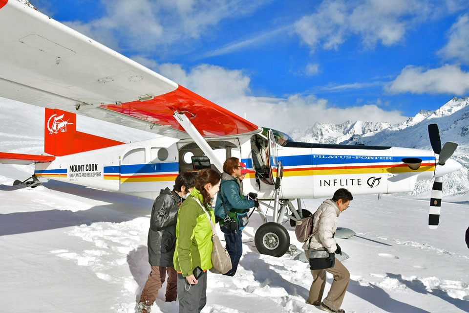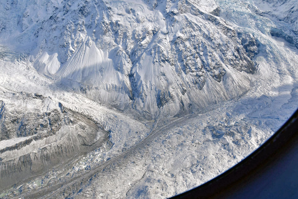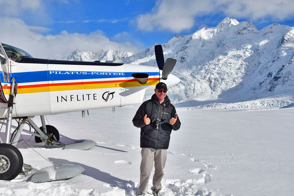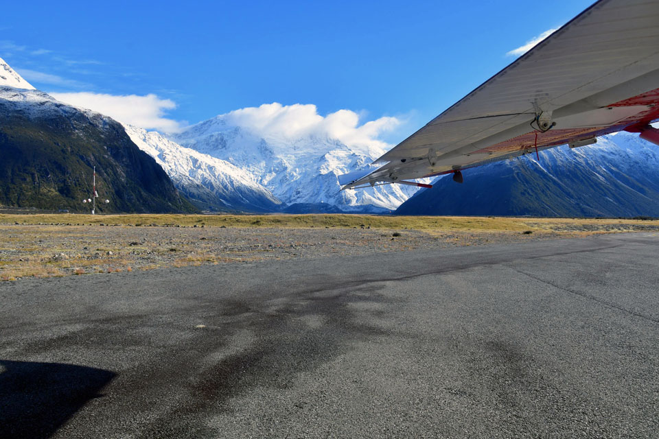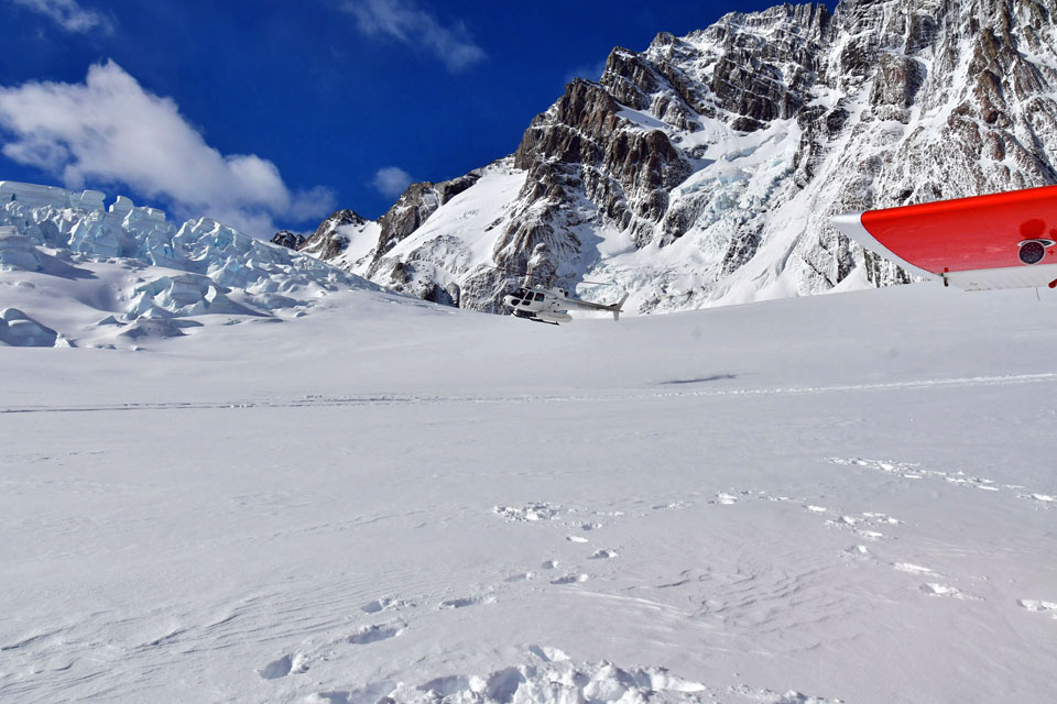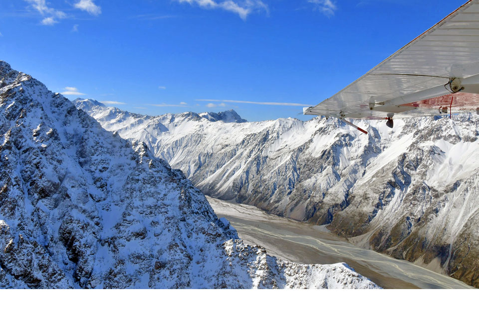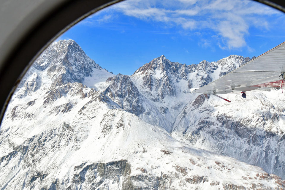 このスライドは、2018年4月にニュージーランド・クック山の氷河に小型飛行機で到達したときの記録です。