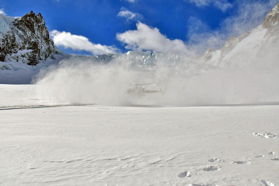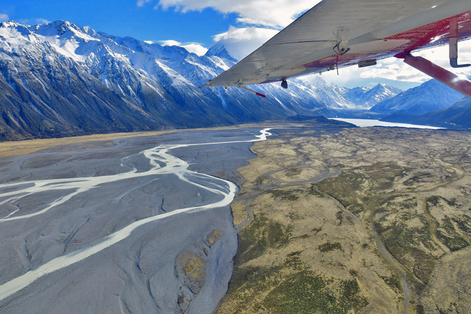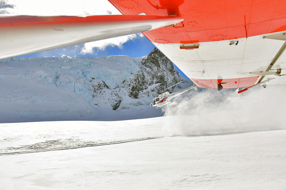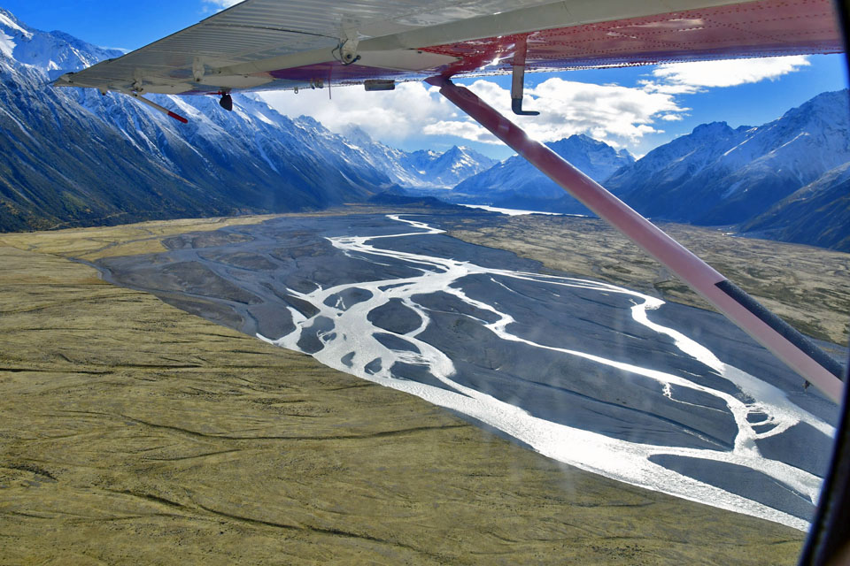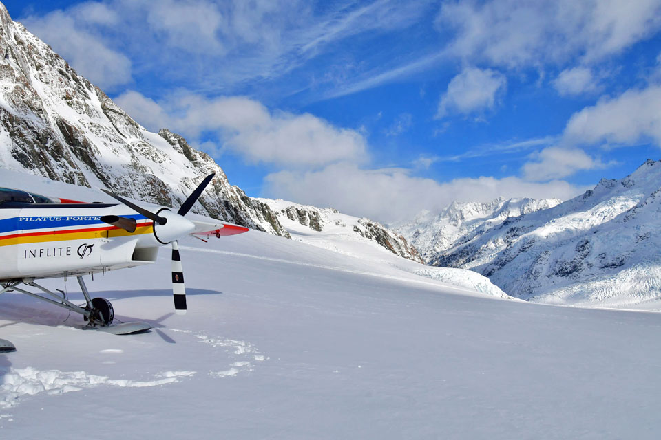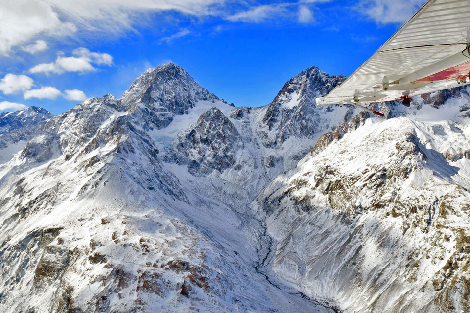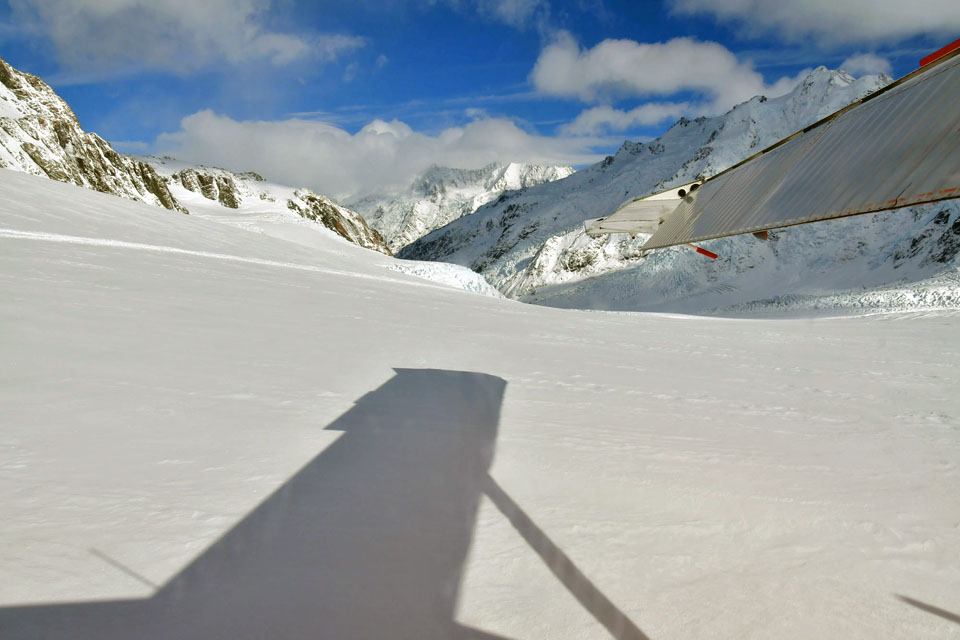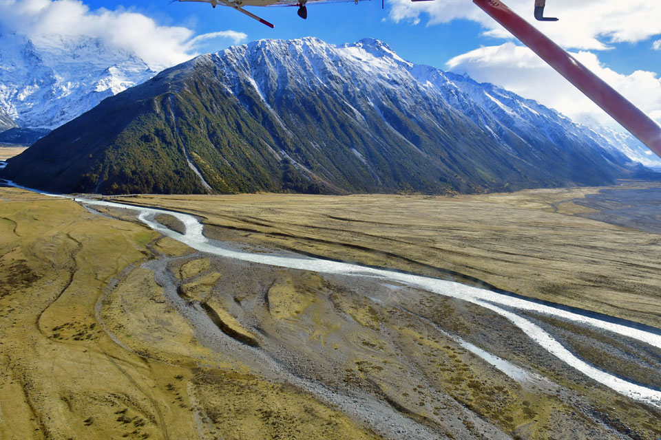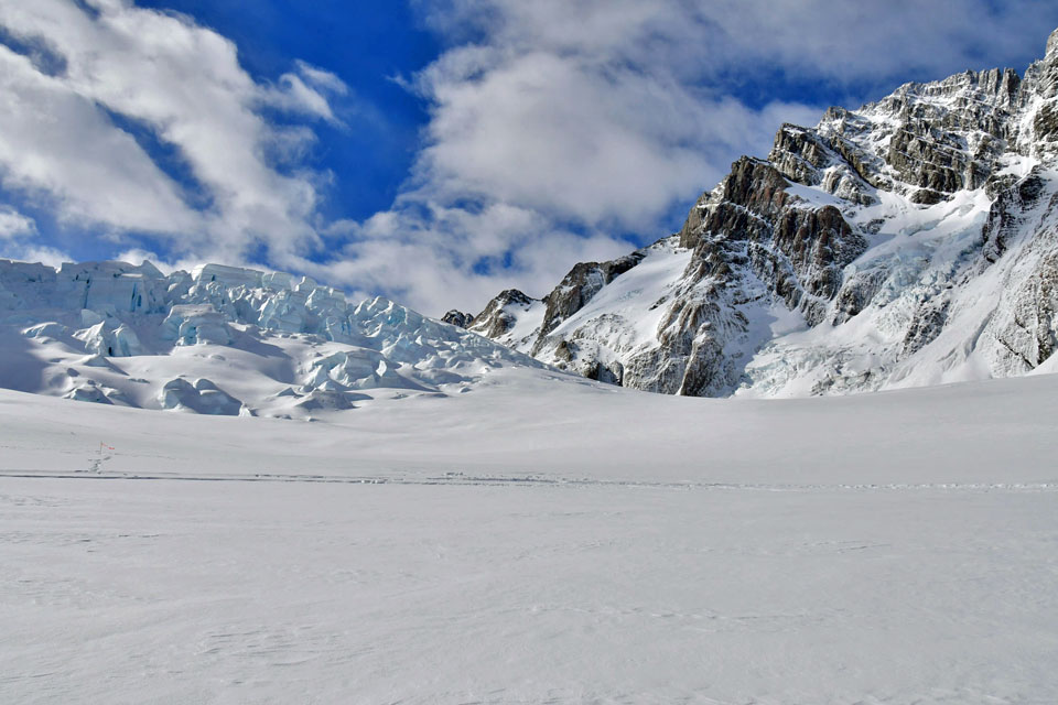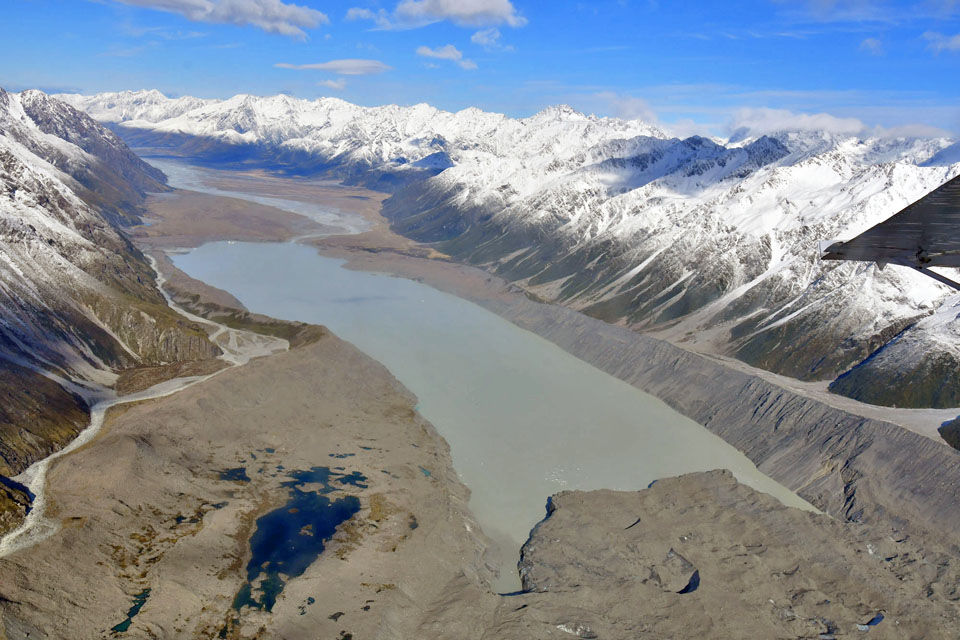このスライドは、2018年4月にニュージーランド・クック山の氷河に小型飛行機で到達したときの記録です。