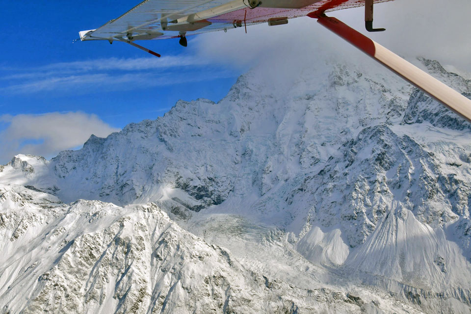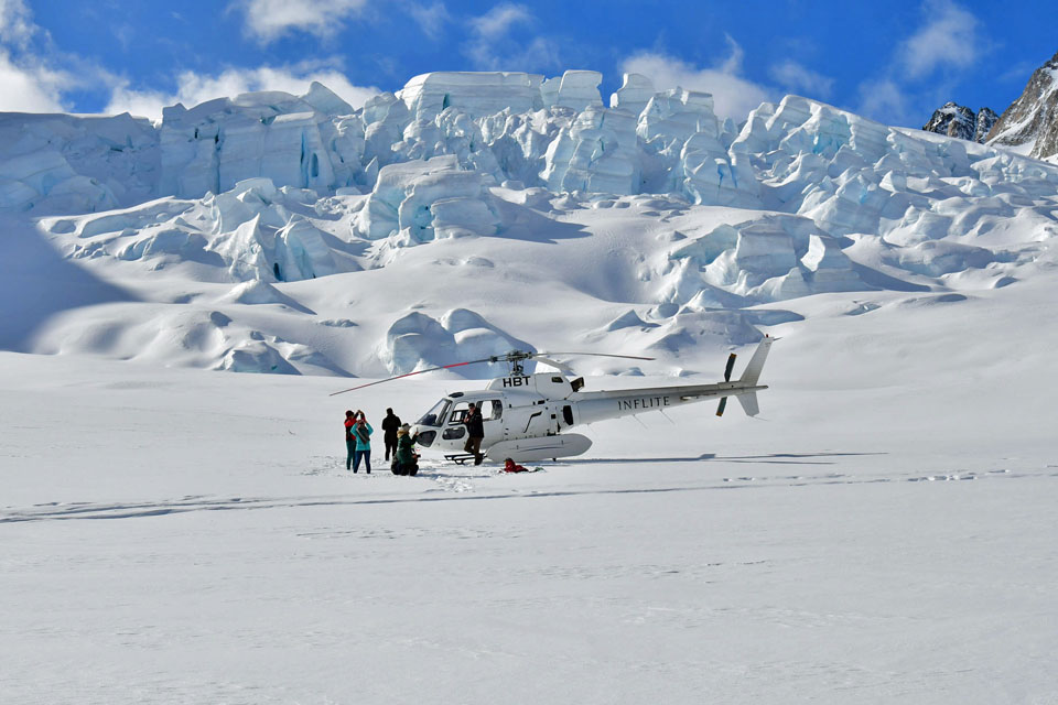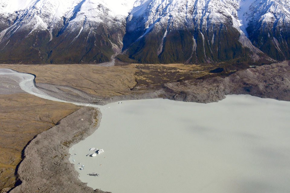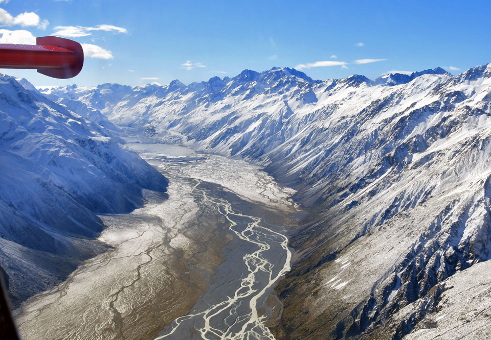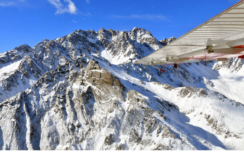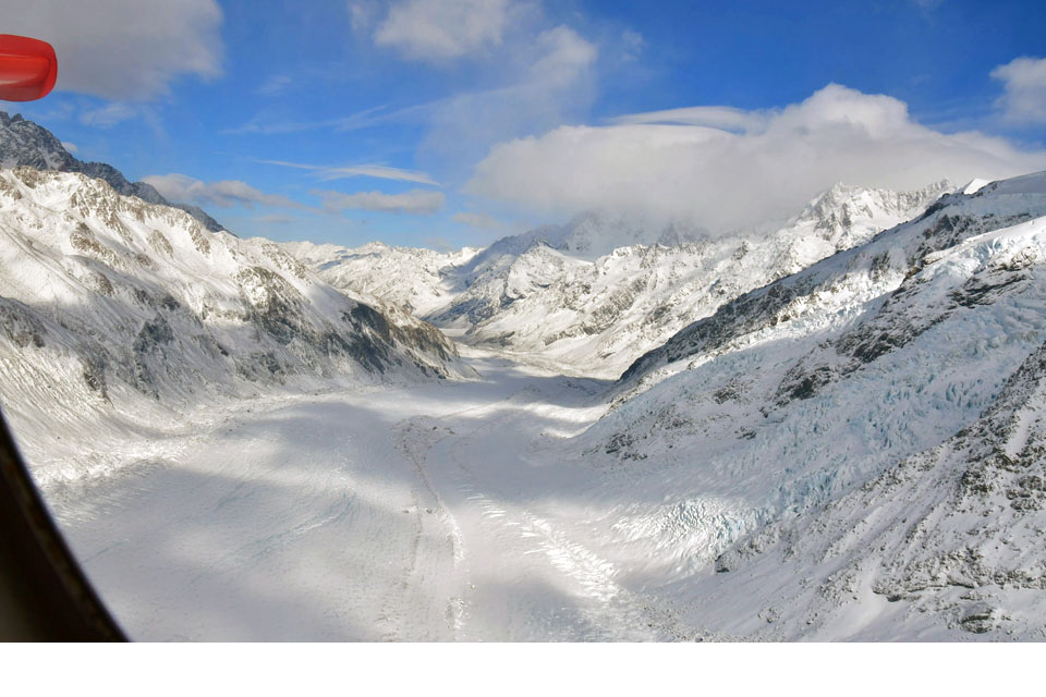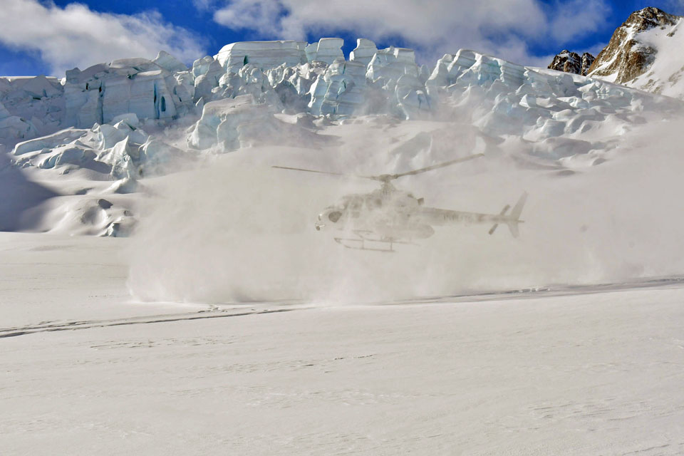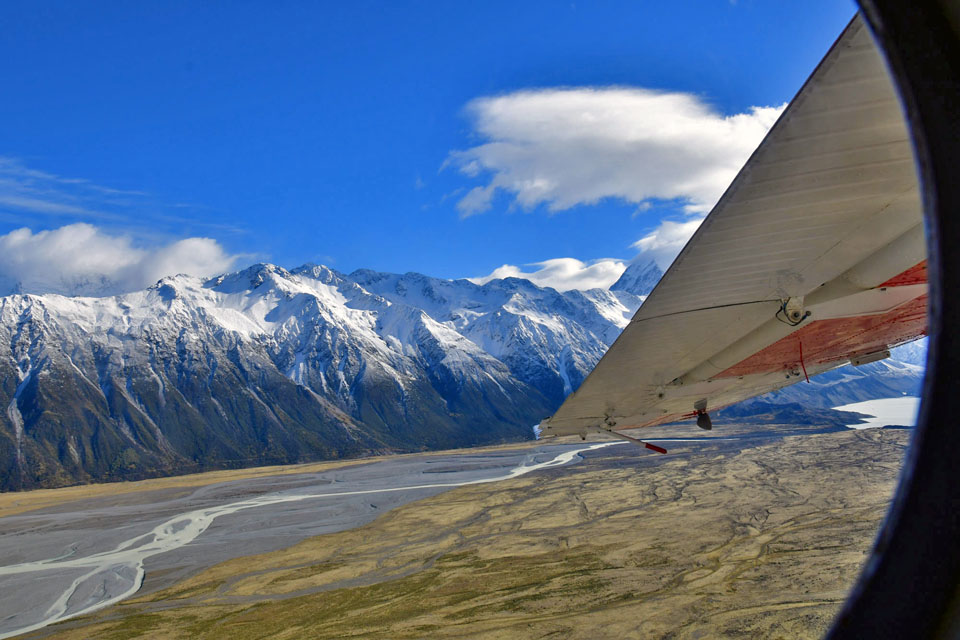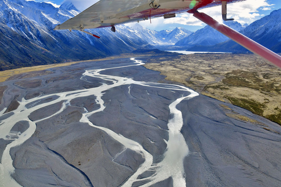このスライドは、2018年4月にニュージーランド・クック山の氷河に小型飛行機で到達したときの記録です。