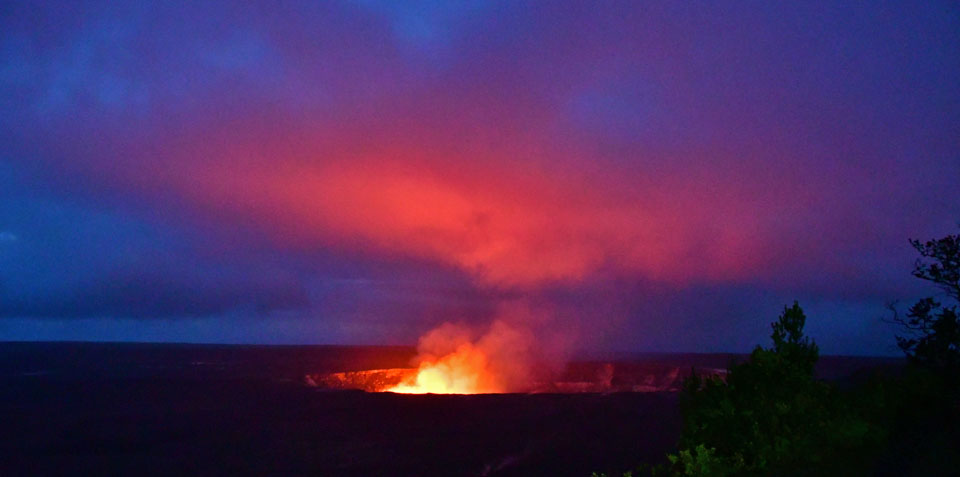 夜のハレマウマウ火口。 撮影:ジャガー・ミュージアム近くにて,2017年6月下旬。 |