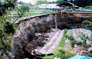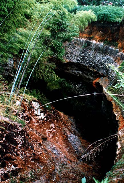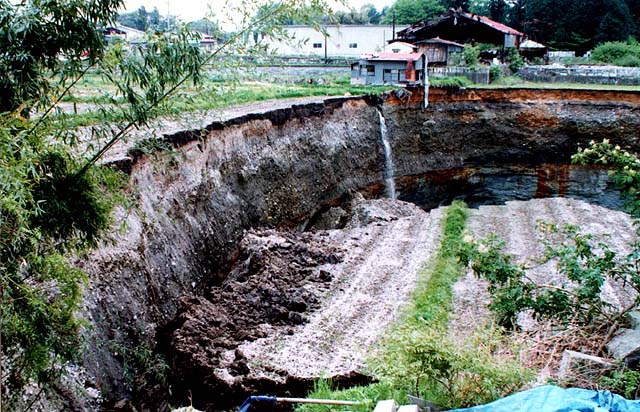 これら3ヶ所の陥没の特徴は、陥没は概ね円形を示していること、陥没の縁は殆ど垂直に切り立っていること、砂礫層下位の大谷層にドーム状の広がりが見られること、1回の陥没は徐々に進行するのではなく、極めて短時間に終了することなどにまとめられる。
