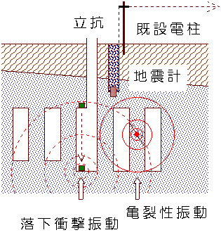 ここでr(m)は発生位置までの距離、Av(kine)は最大速度振幅である。(2)式は、微小地震のマグニチュードを計算する渡辺の式を、大谷地区の地域性を考慮して変形したものであるために、自然地震のマグニチュードとは異なっている。