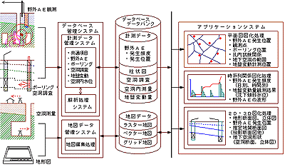 大谷石採取場跡地の最終破壊は陥没であるが、前兆現象の発生場所と陥没場所は一致するものと考えて、アボイドマップの作成による危険地域の表現を行っている。まず、野外AEのエネルギーを下記式に従って計算する。
